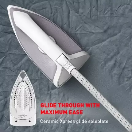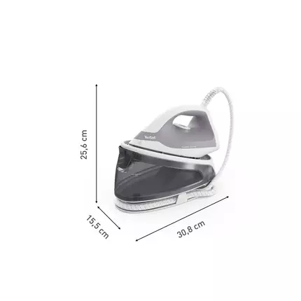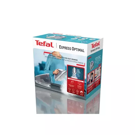 The ultra-compact steam generator iron that delivers fast results and easier garment care. Give your steaming sessions an upgrade with high-efficiency performance. The Express Optimal Steam Generator Iron delivers powerful steaming to ensure quick results for all your ironing needs. Powerful steam performance—a 110 g/min continuous steam output, a 200 g/min steam boost for stubborn creases and a 5.3-bar pump—comes together with Calc Clear Technology for easy maintenance and an extremely compact design for total convenience. With Tefal, take care of your linen day after day. Save time and enjoy easy, hassle-free ironing sessions with Tefal's high-performance steam generator irons. Our exceptional appliances are the very best solutions for all your garment care needs—removing even the toughest creases efficiently with no need for refills while ironing. Achieve perfect results in no time. It's that easy! All of our steam stations also come equipped with anti-calc solutions for durable performance and drip-free results. Features: A steam generator iron equipped with a 5.3-bar pump and a 110 g/min cont. steam output for fast results A powerful 200 g/minute steam boost tackles thick fabrics and even the most stubborn creases Up to 3 times more steam than a traditional steam iron* for powerful performance to meet all your garment care needs Exceptional steam power in an ultra-compact frame with a footprint smaller than a sheet of A4 paper Calc Clear technology to ensure long-lasting steam performance and efficient maintenance Fixed 1.2 L water tank offers outstanding convenience for unlimited refills during your ironing sessions Xpress Glide soleplate ensures exceptional glide for easier and more enjoyable ironing sessions day after day Quality backed by our 15-year repairability guarantee—to help protect the environment and cut down on waste Specifications: Brand: Tefal Model: SV4111G0 Type: Steam Iron Power: 2200W Steam output: 110 Steam boost: 200 Spray: No High Pressure Boiler: No Vertical Steam: Yes Setting of steam & temperature: Manual setting Heat Up Time: 2 Soleplate Technology: CERAMIC EXPRESS GLIDE Glideability Of Soleplate: **** Durability Of Soleplate / Scratch Resistance: **** Continuous Steam Diffusion: Tip and side Precision Tip: No Comfort Handle: No Silence technology: No Anti-Drip: No Auto-Off: Yes Eco Mode: No Power cord length: 1.6 Power cord rewinder: No Lock-System: No Water tank capacity: 1.2 Water tank: Fix Empty Tank Detector: No Continuous Refilling: No Cord Storage: Steam cord Scale collector: No Anti Scale Function: Rinsing system Scale alert: Yes Colours: Dove and white Water pump: 5,3 Steam hose length: 1.60