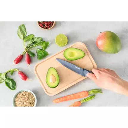 With this Fresh Kitchen Chef knife, enjoy a knife that featuring non-stick stainless steel blade, bringing high resistance and extreme ease of use to your daily cooking. The soft-touch ergonomic handle brings optimal comfort and control. The product comes with a safe blade cover, offering safe and easy storage. The titanium reinforced non-stick coating is resistant and easy to clean. The Fresh Kitchen Chef Knife 15 cm is ideal for mincing, slicing and chopping all types of food.