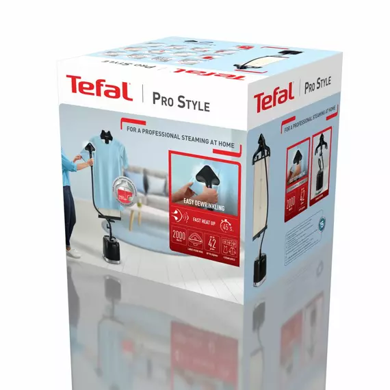 Brand Tefal Model Number IT3480 Color Black Product Dimensions 45.7 x 29.6 x 16.11 cm; 4.75 kg Capacity 1.5 Liters Power / Wattage 2000 watts Voltage 220 Volts Item Weight 4.75 Kilograms POWERFUL STEAM: Discover a high-performance garment steamer that delivers a powerful steam output up to 42 g/min—for an easy process that dewrinkles, refreshes and purifies all at once. REFRESHES AND PURIFIES GARMENTS: The all-natural purifying power of steam reduces odors, refreshes and sanitizes all your clothes. PERFECT FOR ALL FABRICS: Designed to meet all your garment care needs, 3 steam output levels remove wrinkles from all kinds of fabric—even the most delicate. FAST HEAT-UP TIME: Always at hand and ready in just 45 seconds, discover garment care that's perfect for last-minute touch-ups and intensive needs, all without the need of an ironing board. 15-YEAR REPAIRABILITY: Low-cost parts available in our 6200 repair centers worldwide, for quick repair over many years—part of our commitment to help protect the environment and cut down on waste. CONVENIENT FEATURES: Simple on/off controls, a 1.5 L water tank offering up to 40 minutes of steaming with easy refills that can be done while steaming, and a compact design for effortless storage. LONG-LASTING PERFORMANCE: Maintenance that couldn't be easier, for performance that's built to last with no more than a simple rinsing system for descaling. WHAT'S IN THE BOX: Pro Style Garment Steamer, protective glove, thick brush for thick clothes, steam bonnet for delicate fabrics, hanger & clips.