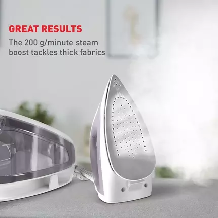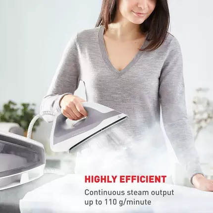 Discover Express Optimal, the perfect solution for all your garment care needs. This reliable steam generator iron delivers powerful performance and up to three times more steam than a traditional steam iron*—a 5.3-bar pump, a continuous steam output up to 110 g/min., and a powerful 250 g/min. steam boost—with features like Calc Clear technology for effortless maintenance and a high-performance Xpress Glide soleplate. All this, in an ultra-compact frame for total convenience. Brand Tefal Model Number SV4111M0 Color Grey Package Dimensions 34.2 x 29.6 x 18.8 cm; 2.62 kg Power / Wattage 2200 watts Special Features Portable Item Weight 2.62 Kilograms HIGHLY EFFICIENT: A steam generator iron equipped with a 5.3-bar pump and a continuous steam output up to 110 g/minute for fast results GREAT RESULTS: The robust power of the 250 g/minute steam boost tackles thick fabrics and smoothes out even the most stubborn creases TIME-SAVING STEAM POWER: Up to 3 times more steam than a traditional steam iron* to save maximum time with faster ironing sessions (*compared to traditional steam iron FV1711E0) EXTRA-COMPACT DESIGN: Discover exceptional convenience with an ultra-compact frame boasting a smaller footprint than a sheet of A4 paper, for effortless storage options and smoother ironing sessions