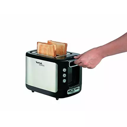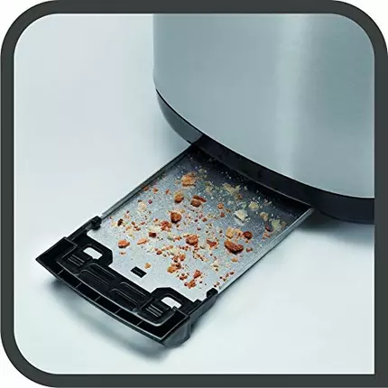Generous design with brushed stainless steel look Generous toaster packed with smart functions like defrost, reheat and stop. A bun rack is included to reheat rolls & pastries Features : Bun warmer accessory Rack to reheat rolls and croissants Variable width slots Ideal for thin & thick slices of bread Removable crumb tray Easy to clean slide out crumb tray Defrost & reheat functions To defrost & reheat previously browned toast according to your wishes High-lift To remove easily all the toast, even the smallest Customized toasting 7 browning levels for desired browning quality Technical Details : High-lift : Yes Power : 850 W Stop : Yes Defrost : Yes Reheat : Yes Control levels : 7 Centres bread automatically for uniform toasting : Yes Removable crumb tray : Yes Bun Warmer : Yes Cord Storage : Yes Indicator light : Yes Colours : Black / stainless steel Dimensions (D x W x H) : 258 x 170 x 186 (mm) Weight : 1.395 (KG)