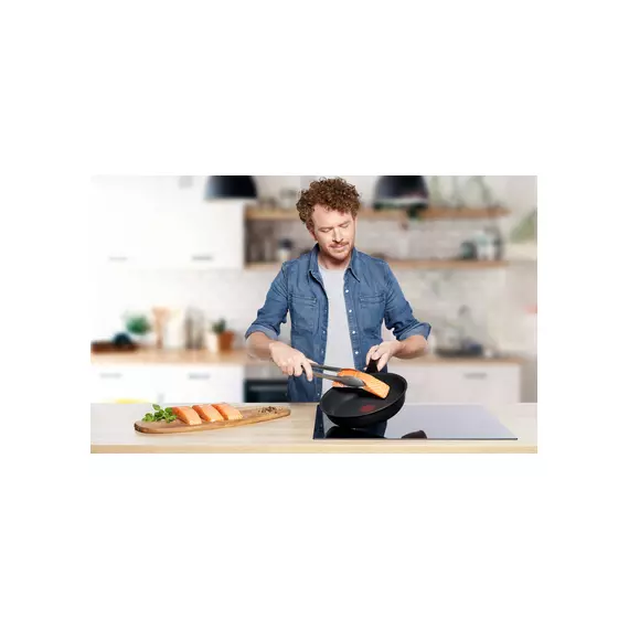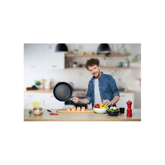 TEFAL UNLIMITED FRYPAN 20 CM The best anti-scratch non-stick coating* *Compared to Tefal's other non-stick coatings. Internal abrasion test. The unmistakable sizzle of chicken tossed into the pan, the clatter of utensils, the quick slide of a spatula at just the right moment... Extreme cooking calls for a frying pan that can withstand extreme conditions. Bringing together the all-new TITANIUM ANTI-SCRATCH coating offering outstanding non-stick durability that can withstand even metal utensils—with an extra-thick THERMO-FUSION™ + base, the Tefal Unlimited frypan takes cooking performance to a whole new level. Description Product Family FRYPAN Diameter 20 CM Material ALUMINIUM Hobs compatibility INDUCTION - GAS - ELECTRIC - CERAMIC - HALOGEN Oven compatibility YES, UP TO 175°C Dishwasher safe YES Inside Coating Name TITANIUM Inside Coating/finish NON-STICK COATING Heat Indicator YES Outside coating/finish NON-STICK COATING Outside coating color BLACK Pouring Edge YES Handle type Fixed Bottom type INDUCTION TECHNOLOGY Coating Characteristic PFOA Free Cooking surface Non stick Cooking style Inspiring cooking Coating durability (for Pans) X6 Product Specificity Specific shape Diameter cm / Nb of people (for Pans) 20 cm / 1-2 people Removable handle No Essentials The best anti-scratch non-stick coating* *Compared to Tefal's other non-stick coatings. Internal abrasion test. Discover TITANIUM ANTI-SCRATCH : The best anti-scratch non-stick coating*, boasting new engineering with maximum resistance that lasts up to 6 times longer compared to Tefal Titanium standard coating. * Compared to Tefal's other non-stick coatings, internal abrasion test 100% safe non-stick coating 0% PFOA, 0% lead, 0% cadmium* * Stricter controls than those required by current food contact regulations. No lead no cadmium (no Pb no Cd) means no intentional addition of Pb and Cd in the coatings. No migration at a level of 0.005 mg/kg. THERMO-SIGNAL™ THERMO-SIGNAL™ technology indicates the ideal starting cooking temperature to guarantee perfect texture, color and taste for delicious full-flavored meals every day. THERMO-FUSION™+ Thanks to its extra large grid combined with a thick base, Thermo-Fusion™+ guarantees fast heating and uniform heat distribution throughout the pan, for evenly cooked food prepared to perfection.