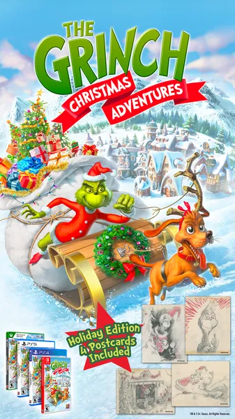 Have a great Grinchy time trying to steal Christmas in this festive platformer – and help the Grinch’s small heart grow a few sizes bigger along the way! Every Who down in Who-ville loves to sing, gift and feast, which are all of the things Grinch can’t stand in the least. So, help the Grinch and his dog Max set out to steal all the presents in Who-ville. You’ll have to be sneaky to avoid the bothersome babble of carol singers, the ever-eager Whos, and all of the tinsel, trimmings and trappings of the Christmas season. Thankfully, the Grinch has some wonderful, awful ideas – like a Santa costume for stealthy sneaking, a Candy Cane Lasso to swing around, a speedy snowboard that can reach special race areas, and more. And Grinch can throw snowballs to freeze any pesky creatures that get in his way. With colorful visuals inspired by Dr. Seuss’s original illustrations, local multiplayer fun with up to two players controlling the Grinch and Max, and controls and puzzles designed for younger players, The Grinch: Christmas Adventures is a fun new way to enjoy the classic Christmas tale.