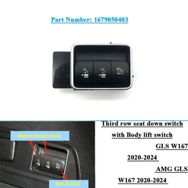 Third Row Three Button Seat Folding With Height Adjustment Switch Button 1679050403 Black CC-4938 Compatible With Mercedes Gle Gls W167 X167 2020-2024