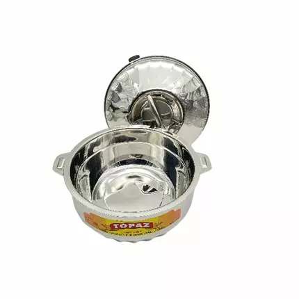 Double walled stainless steel casserole with insulated lid keeps food hot and fresh for hours Attractive casserole make mealtimes fun and exciting. Integrated side-handles allow easy to carry from kitchen to dining table with an eye catching design featuring stainless steel casserole Made from durable quality steel, the functional and leak proof lid of the casseroles with an Integrated side-handles allow easy grip which can be opened or shut with a simple motion and trap the heat effectively inside the casserole or hot pot The perfect serving casserole for any special occasions or household like birthday or anniversary parties, holiday, picnic will keep your Soup, Salads, chappati, Roti or any beverages hot and fresh for long hours Enhance the look of your dining table with its exclusive shape and design. Color: Silver, Material: Stainless Steel. Package Contents: 1 - Piece Size 1000ML