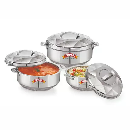Topaz Hotpot Almas 3pcs Casserole Insulated Food Warmer With Steel Handle 4000/6000/8000