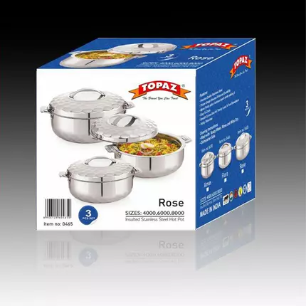 Topaz Hotpot Rose 3pcs Casserole Insulated Food Warmer With Steel Handle 4000/6000/8000