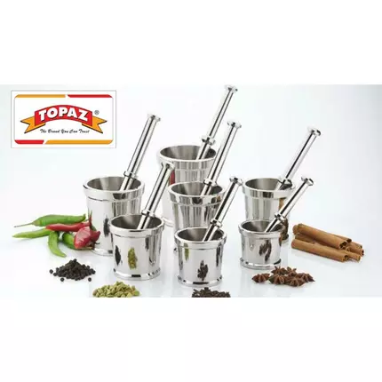 - Package Content : Stainless Steel Khalbatta Size No. 4, Spice Mixer, Mortal & Pastel Set - 2 Pcs.
