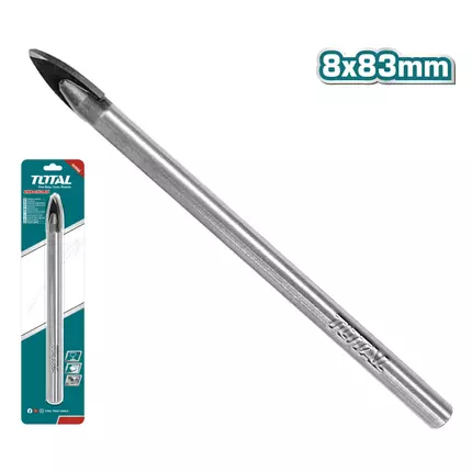 Specifications: Brand: Total Tools Product: Drill Bit Model No: TACG100812 Type: For glass and tiles Drill diameter: 8mm Length: 83mm Size: 8X83mm Packaging: Blister card