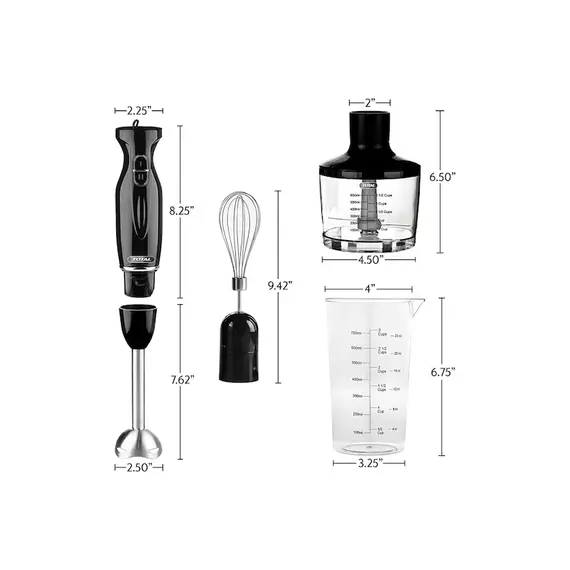 Specifications: Brand: Total Model: TJB056K Type: Hand Blender 5-in-1 set Wattage: 100W Voltage: DC 16V SUS shaft blend rod 5-speed control With LED display 2 Stainless steel blade Have the function of mixing juice or sauce Charge volts: 220-240V~50-60Hz (TFCLI1613) Packed by carrying case Include: 1 Pcs 500ml chopper bowl 1 Pcs whisk 1 Pcs measuring cup 1 Pcs milk frother 1 Pcs storage bracket 1 Pcs 2.0Ah battery pack(TFBLI1620) 1 Pcs charger