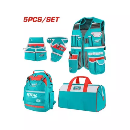 Total 5pcs Tools Bag Set with Tool Backpack, Bag, Pouch, Vest & Drill Holster TOS23090