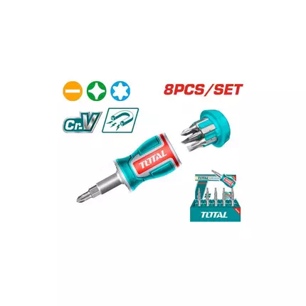 Total 8in1 Stubby Screwdriver Set with Handle & Screwdriver Bits TACSDS0706