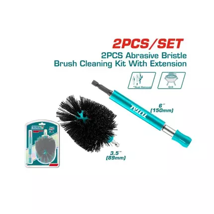 The brush is used to clean and polish metal surfaces. The 360° cleaning brush performs its functions effectively thanks to the strong plastic handle. Specifications: Brand: Total Model: TACH0301 Type: Bristle Brush Abrasive bristle brush with extension Abrasive bristles for removing rust, paint, corrosion Durable nylon bristles for extended brush life Packed by double blister