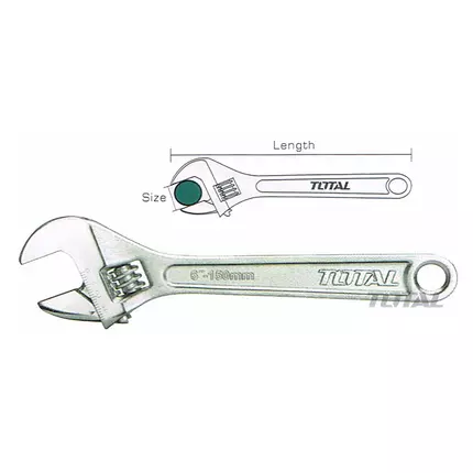 Description Total Adjustable Wrench Model no. THT1010123 Length 300mm (12") ADJUSTABLE CLAMP SIZE:0-35MM PACKED BY PAPER CARD