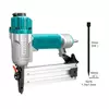 Specifications: Load capacity:100pcs Brad size:15-50mm Ga18,1.25x1.00mm Quick-release nosepiece for fast clearing of jams. With Europe type connector, USA type connector, Nitto type connector and Italy type connector. Operation pressure:0.4-0.7Mpa(60-100Psi) With 1000pcs brad nails Packed by color box