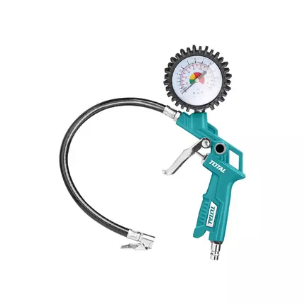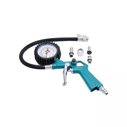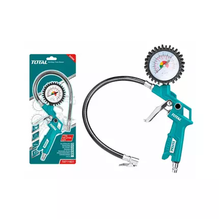 Specifications: Brand: Total Model: TAT11601 Max. pressure: 8.5 bar (120 psi) Air inlet: 1/4" Size Gauge: 63.5mm Length Hose: 350mm Weight: 0.55 kg Colour: Blue and Black With Europe type connector, USA type connector, Nitto type connector and Italy type connector. Packed by sliding card