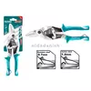 Specifications: TOTAL Style two tone soft handle Aviation snip (Right) Length:250mm(10") Max.cutting thickness: Carbon steel ≤1.2mm Stainless steel ≤0.7mm Packed by half double blister