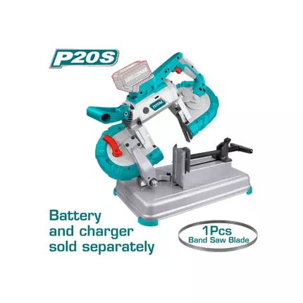 Specifications: Brand: Total Model: TBSLI20127 Type: Mitre Saw Voltage: 20V No-load speed: 0-120m/min Max cutting capacity (rectangular workpiece): 127mmx127mm Max cutting capacity (round workpiece): 127mm Integrated work light With 1 Pcs band saw blade Band saw blade size: 1141mmx13mmx0.65mm Battery and charger sold separately Packed by color box