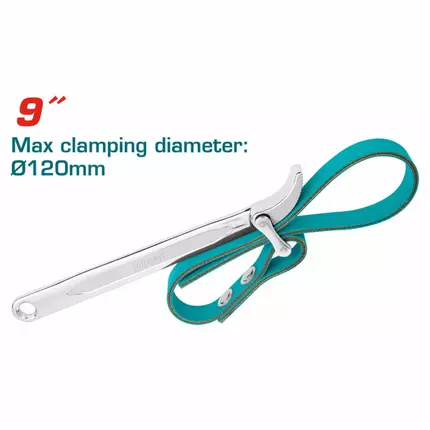 Specification: Brand: Total Tools Model: THTBPW0906 Size: 9" Clamping Diameter: Φ30mm-120mm Belt Length: 500mm Drop-forged handle Rubber and nylon belts Heat treatment chrome plated Packed by blister card