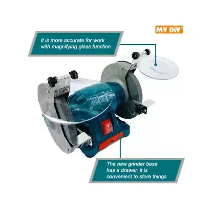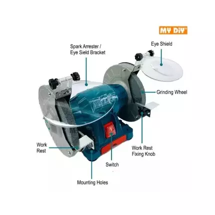 Product Description 6” BENCH GRINDER TOTAL 150W ALUMINIUM BASE TBG15015 Voltage: 220-240V~50Hz Input power: 150W No-load speed: 2950RPM Wheel diameter: 150mm(6″) Heavy Duty Aluminium Base Adjustable work rest Including 1 set eye shield 1pcs tool storage box Packed by carton box Features 1: Adjustable work-rest lengthen wheel life 2: Adjustable eye shield for safety work 3: Dustproof switch for long life 4: Stable base for better stability