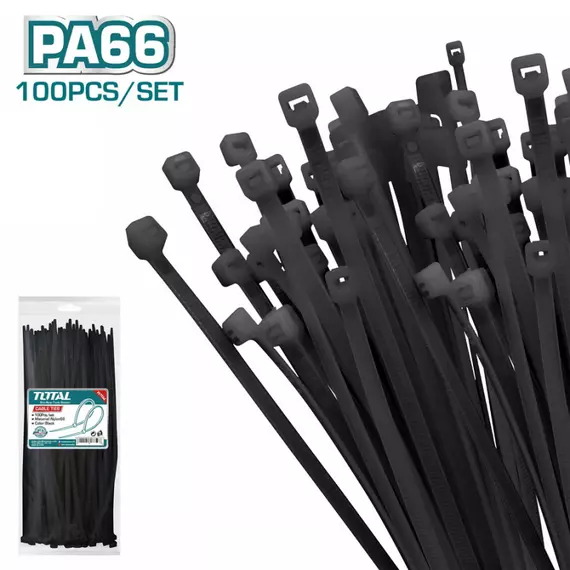 Specifications: Brand: Total Color: Black Material: Nylon 66 Length: 720mm Width: 9mm Quantity: 100pcs/set Warranty: Two years Packaging: Packed by label Model: THTCTB72090