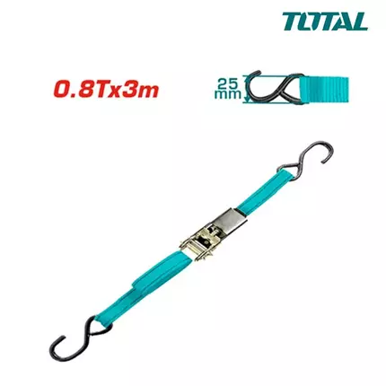 TOTAL S Hook Strap is a reliable solution to protect and secure your important tools. With a load capacity of up to 0.8 tons and a length of 3m, this is a reliable high-quality product for diverse needs in daily work. Features: Strong load capacity: With a load capacity of up to 0.8 tons, the S TOTAL hook strap ensures strong grip and protection of your important tools during transport and storage. Suitable length and width: With a length of 3m and a width of 25mm, this belt provides versatility and reliability for use in a variety of situations. 2:1 Safety Ratio: Designed with a 2:1 safety ratio, this belt provides outstanding resistance and ensures maximum safety for your tools. Specifications: Brand: Total Type: Ratchet Strap Load: 0.8T Length: 3m Width: 25mm Safety Factor: 2:1 Ribbon Material: PES Attachment: Ratchet and S Hook Packaging: Poly Bag