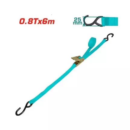 TOTAL S Hook Strap is a reliable solution to protect and secure your important tools. With a load capacity of up to 0.8 tons and a length of 6m, this is a reliable high-quality product for diverse needs in daily work. Features: Strong load capacity: With a load capacity of up to 0.8 tons, the S TOTAL hook strap ensures strong grip and protection of your important tools during transport and storage. Suitable length and width: With a length of 6m and a width of 25mm, this belt provides versatility and reliability for use in a variety of situations. 2:1 Safety Ratio: Designed with a 2:1 safety ratio, this belt provides outstanding resistance and ensures maximum safety for your tools. Specifications: Brand: Total Type: Ratchet Strap Load: 0.8T Length: 6m Width: 25mm Safety Factor: 2:1 Ribbon Material: PES Attachment: Ratchet and S Hook Packaging: Poly Bag