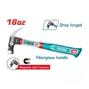 With magnetic nail holder located at the top. Innovative drop-forged, heat treated 45# Carbon steel hammer head. Strong tri-color fiberglass handle for comfortable grip. Specifications: Brand: Total Model: THCH61016L Type: Hammer Weight:16oz/450g Length:345mm Magnetic nail function Innovated overall forged drop-forged hammer head Heat treatment,45# carbon steel Strong three-color handle for comfortable gripe Packed by paper card Packing Weight: 0.778kg Dimension: 34.5 x 13.5 x 3 cm