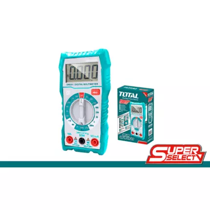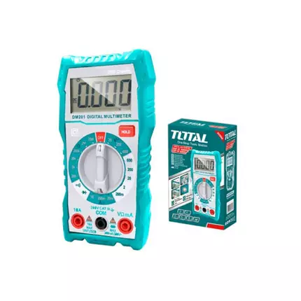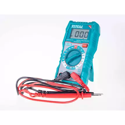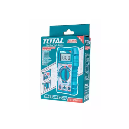 Offering an exceptional mix of modernity, design, ease of use, great range and competitive pricing, TOTAL TOOLS stands out from the crowd. So much so, TOTAL is one of the fastest-growing Tools Brand. Specifications: Brand: Total Model: TMT460012 2000 counts LCD Display DC Voltage: 200mV/2V/20V/200V/600V AC Voltage: 20V/200V/600V DC Current: 20mA/200mA/10A Resistance: 200Ω/2kΩ/20kΩ/200kΩ/2MΩ/20MΩ With lower battery indication function Included: 1 set of Test leads, 2 pcs of AAA batteries Packed by color box