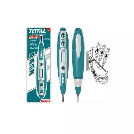 Offering an exceptional mix of modernity, design, ease of use, great range and competitive pricing, TOTAL TOOLS stands out from the crowd. So much so, TOTAL is one of the fastest-growing Tools Brand. Features: Two-button operations and no battery is needed to operate. Direct / Voltage Test : requires direct contact against the object to be tested and there will be an LCD with 5 indicating ranges from 12V – 220V. Inductance / Break-point Test : put close to the object to be tested and a “⚡️” icon will appear (or disappear) signifying the object is transmitting electricity (or not). Specifications: Brand: Total Model: THT292201 Voltage AC: 100-500V, DC: 12-220V Battery Not required Induction test to find phase line Ground line and breakpoint of phase line Size: 135mm*23mm*17mm Length: 135mm Width: 23mm Thickness: 17mm Packed by double blister