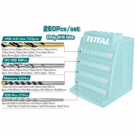 Total Drill Bit Set With Drill Bits & Display Box 260pcs TAKD2608M-1 / TAKD2688