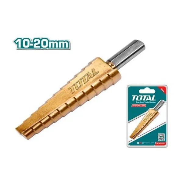 The TOTAL TAC8210201 10-20mm step drill bit is the perfect choice for construction, repair, and installation jobs. You can use it to drill precise holes in wood, metal, plastic, and many other materials, helping to increase productivity and ensure safety.