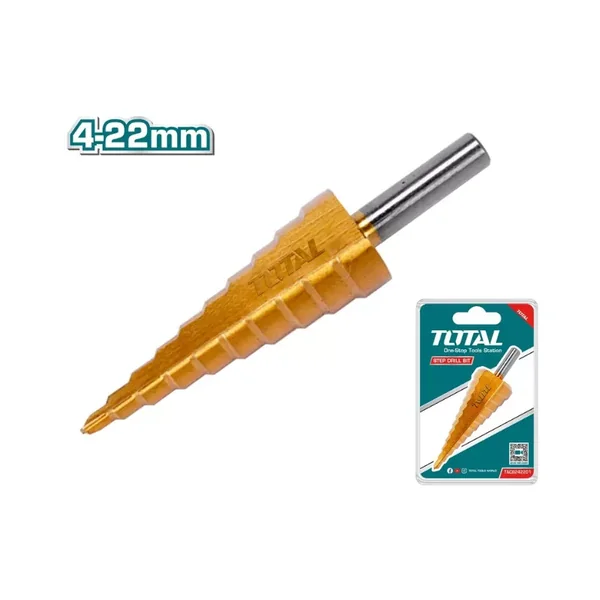 The TOTAL TAC8242201 4-22mm step drill bit is the perfect choice for construction, repair, and installation jobs. It accurately drills clean holes in wood, metal, plastic, and many other materials, helping to increase productivity and ensure safe operation.