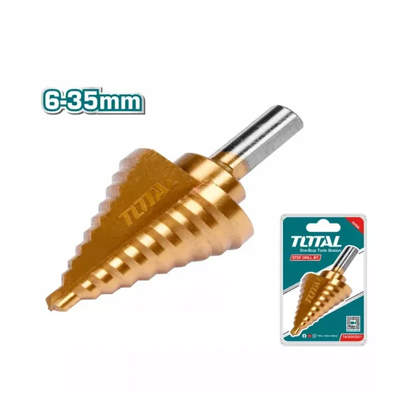 The TOTAL TAC8263501 6-35mm step drill bit is the perfect choice for construction, repair, and installation jobs. You can use it to drill precise holes in wood, metal, plastic, and many other materials, helping to increase productivity and ensure safety during work.