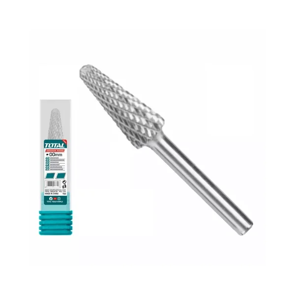 The Total Tools TAKC1003 is a high-quality tungsten carbide rotary burr designed for precision material removal. This double-cut burr is ideal for deburring, shaping, and grinding on a variety of materials when used with a compatible die grinder.