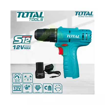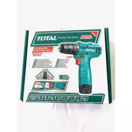 Offering an exceptional mix of modernity, design, ease of use, great range and competitive pricing, TOTAL TOOLS stands out from the crowd. So much so, TOTAL is one of the fastest-growing Tools Brand. Specifications: Brand: Total Model: TDLI12415 Voltage: 12V No-load speed: 0-600rpm Max.torque: 20NM Chuck capacity: 0.8-10mm Torque settings: 15+1 Charge volts: 220V-240V~50/60Hz Dimensions: 22cm * 20cm * 6cm Battery: 1 pc 12V Lithium-ion 1.5Ah batteries Charger: 2Hr approx. Weight: 1.28kg Integrated work light With 1pcs 1.5Ah battery pack With 1pcs charger With 1pcs Cr-V 65mm bits Packed by color box