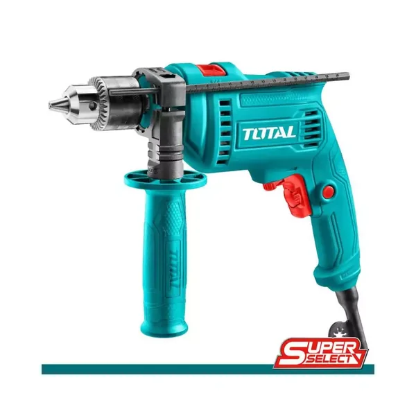 The Total Drill Machine Impact 680W (TG1061356) is a powerful and versatile tool designed for a wide range of drilling and driving applications, featuring variable speed control and a hammer function for demanding tasks.