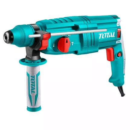 TOTAL is a One-Stop Tool Station to get your hands on with a wide range of tools in high quality for professional use but with a lower price range. Specifications: Voltage:220-240V~50/60Hz Input power:800W No-load speed:0-1100rpm Impact rate:0-4000bpm Impact energy:2.5J Max.drilling capacity: Concrete:26mm Steel:13mm Wood:30mm SDS plus chuck system With 3 drills and 2 chisels With 1set extra carbon brushes Packed by BMC