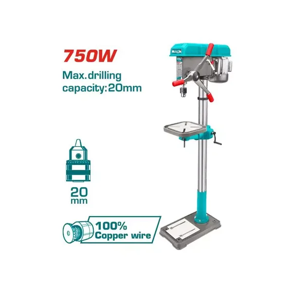 The Total TDP207505 Drill Press is a robust and versatile 750W benchtop tool designed for precision drilling in metal, wood, and plastics. With 16 spindle speed settings and a generous 20mm (50/64") drilling capacity, it offers the control and power needed for a wide range of professional and workshop applications.