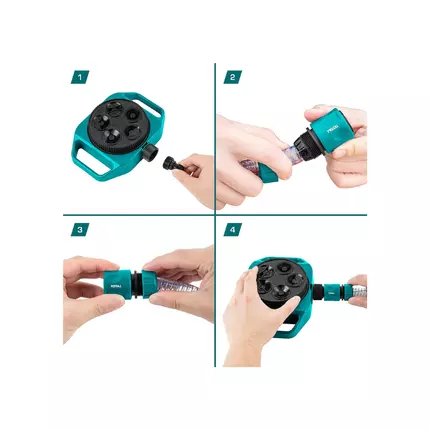 Key Features: HIGH QUALITY MATERIAL Adopt high quality ABS plastic, lightweight and portable FIVE FUNCTION Five sprinkler heads with five different settings of the water sprinkler, you can adjust it according to your different need STABLE & DURABLE Accurate water patterns,Use each size or shape to put water exactly where you need it. No over spray or out of pattern watering CONVENIENT TO USE Just attach to an outdoor spigot and position in any area of your lawn, easy to install. Watering turret sprinkler for lawn used to water lawn, garden, crop and roof cooling, or just giving your kids for a cool summer EASY & CONVENIENT STORAGE The low profile and cast in storage loop provides an easy and convenient way to store when not in use Specifications: Brand: Total Model: THPS63022 Type: Plastic 5-In-1 Turret Sprinkler 3/4" Tool Adaptor Material: ABS Net Weight: 160g Packed By Paper Hanger