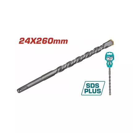 Features: High-temperature-brazed tungsten carbide blades ensure impact resistance and bend resistance for longer work life. Wide and deeply supported plate design enhances safety, prevents tip breakage, and facilitates faster, more accurate drilling. Large volume spiral flute efficiently removes drill dust, speeding up drilling processes. Lower vibration ensures comfortable, fatigue-free operation. Suitable for use in granite, concrete, masonry, limestone, natural as well as artificial stones, and more. Specifications: Brand: Total Tools Model: TAC312403 Type: Hammer Drill Bit Size: 24 x 260mm SDS PLUS: SDS+ stands for Slotted Drive System Plus Carbide Tip: High quality cross head carbide tip Shank Material: Chrome alloy steel Packaging: Packed by plastic hanger