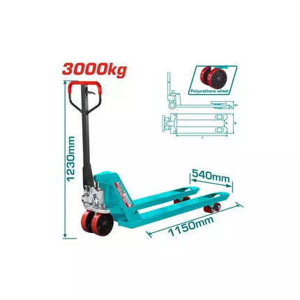 Total Hand Pallet Truck 3000kg with Polyurethane Wheel, Comfortable Rubber Grip THT301301