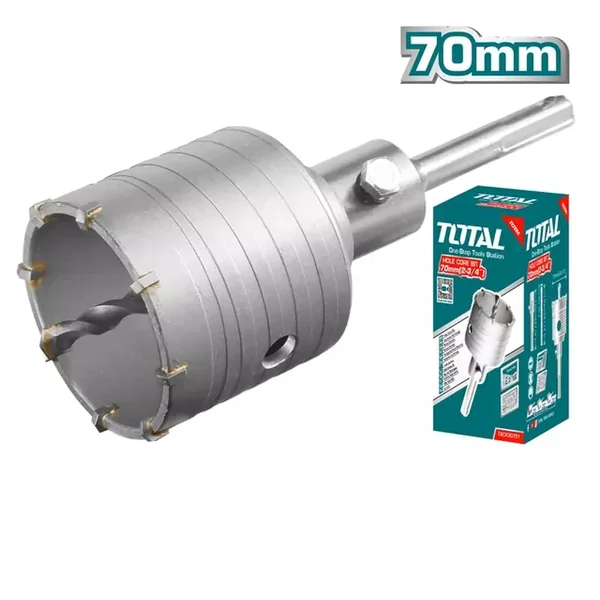 The Total Hole Saw Core Bit for Concrete 70mm (TAC430701) is a professional-grade tool designed for efficient and precise drilling in concrete, masonry, and other hard materials. This complete kit provides everything needed for clean, core-style holes.