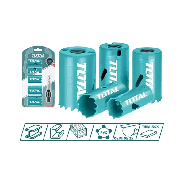 This 7-piece bi-metal hole saw set provides a versatile solution for cutting clean, precise holes in a variety of materials including wood, plastic, and metal. The complete kit includes multiple saw sizes, an adapter, and an arbor for immediate use.