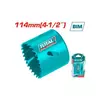 Specifications: Brand: Total Model: TAC4111412 Type: Hole Saw Diameter: 114mm (4-1/2") Cutting depth: 38mm(1-1/2") Material: HSS M3 Bi-metal Veriable teeth: 4/6 Packed by double blister