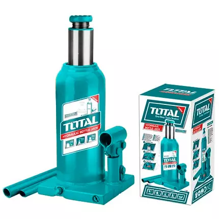 Description TOTAL HYDRAULIC BOTTLE JACK is a high quality compact jack that can lift upto 6 tons. The simple portable design makes it easy to use and weighs only 4.6 kg. Minimum height of 21.6cm & maximum height of 41.3cm. Ideal for auto, truck service, farm and shop use. With safety valve Min. height: 216 mm Max. height: 413 mm Travel: 197 mm Net weight: 4.6 kg Product Weight (kg): 4.45Kg Specifications: 6Ton With safety valve Min. height: 210mm Max. height: 410mm Travel:200mm Net weight:4.1kg Packed by color box