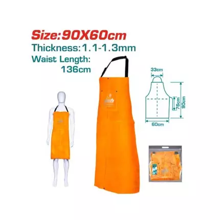 Specifications: Brand: Total Model: TSPWA03 Type: Welding Accessories Size: 90*60cm Yellow cow skin,heat insulation, flame retardant, wear resistance. Leather welding apron can effectively protect the front part of the body, prevent welding spatter from splashing on clothes and skin. Packed by poly bag