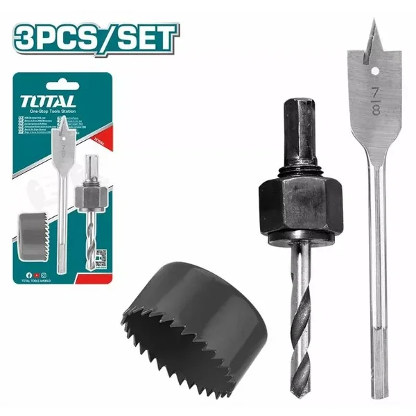 The Total Lock Installation Hole Saw Set (TACSH1031) is a convenient 3-piece kit designed for creating precise holes for locks, knobs, and other hardware installations in wood doors and similar materials.