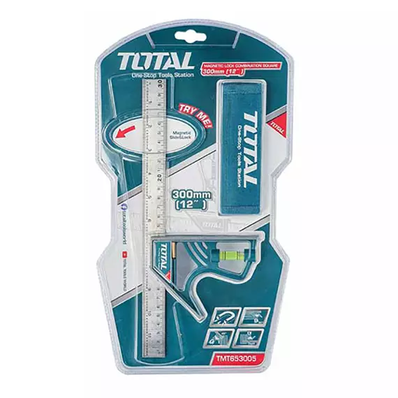 Specifications: Excellent for 45°, 90° as well as depth measurements. Package comes with a 1pc stainless steel scriber. Material Holder: Zinc alloy, Ruler: Stainless steel Length: 300mm (12") Width: 25mm Thickness: 2mm Net weight:355G Magnetic lock adjustment heavy-duty zinc body stainless steel blade Packed by double blister