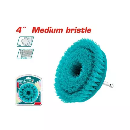 Specifications: Brand: Total Model: TACM1041 Type: Cleaning Brush 4" Medium bristle brush Shank: 1/4" Hex Ideal for cleaning: glass, plastic, laminate, flooring, porcelain, granite, tile, carpet Packed by double blister